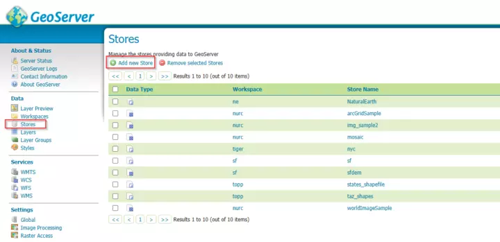 - Navigate to "Data" --> "Stores" on the left-side menu