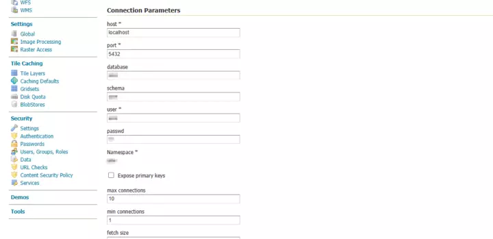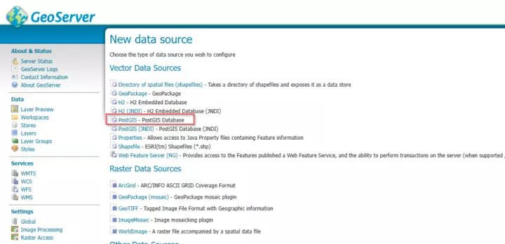 GeoServer is a Java web "applet" that is served by the web server Jetty. To make the web app available on a host that already serves other web applications and to simplify TLS management using Certbot, we will use Nginx as a reverse proxy. GeoServer can serve WMS, WFS, and other services based on various data sources. One of the most efficient ways to store and serve spatial data is to use PostGIS, a spatial data extension for PostgreSQL.