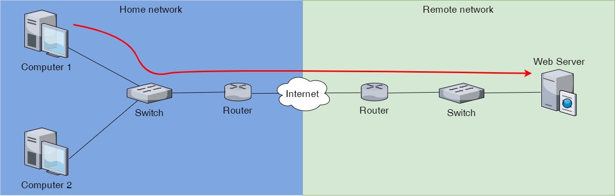 Når en datamaskin skal kommunisere med en annen datamaskin starter den med å putte beskjeden inn i en IP pakke. Denne IP pakken merkes med avsender IP adresse og mottaker IP adresse. Så sammenlignes IP adressen til datamaskinen som skal motta beskjeden med datamaskinens egen IP adresse og nettverks maske. Hvis den oppdager at den skal kommunisere med en datamaskin på et annet nettverk enn sitt eget, vil den sende beskjeden til routeren på nettverket sitt.